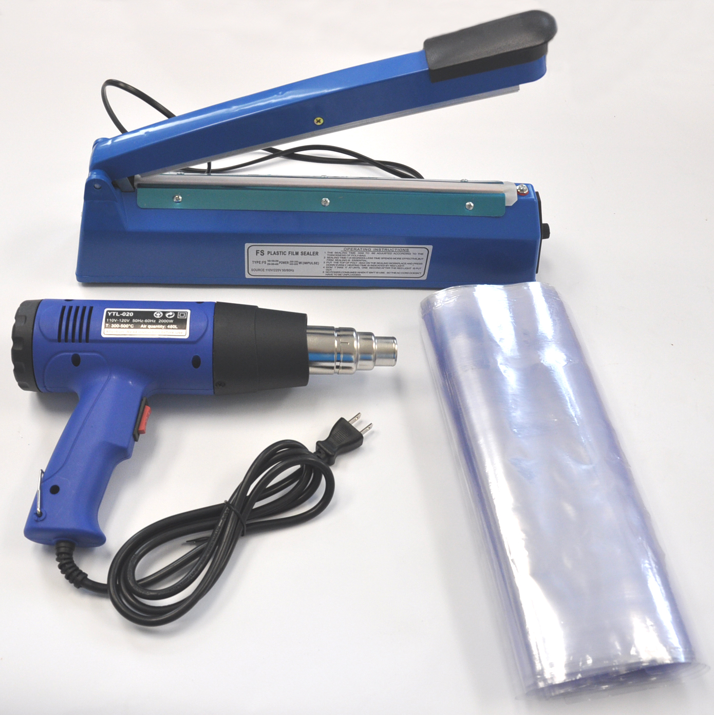 8 inch (200mm) Impulse Heat Sealer+Heat Gun+Shrink Wrap Plastic